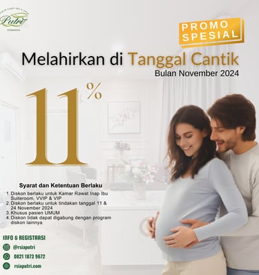 Untuk Bunda yang HPL-nya di tanggal 11-11-2024 dan 24-11-2024, segera ke RSIA Putri Surabaya karena ada promo menarik !