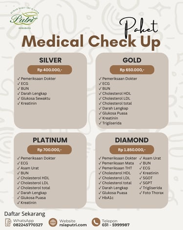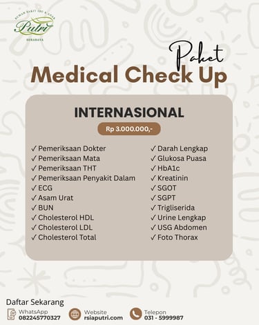Kenali kondisi kesehatan sejak dini dengan pilihan paket MCU lengkap, akurat, dan terpercaya.